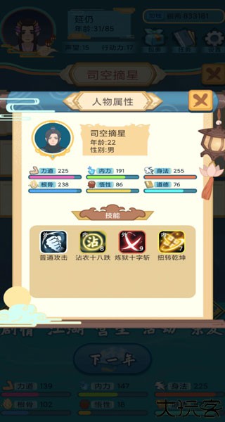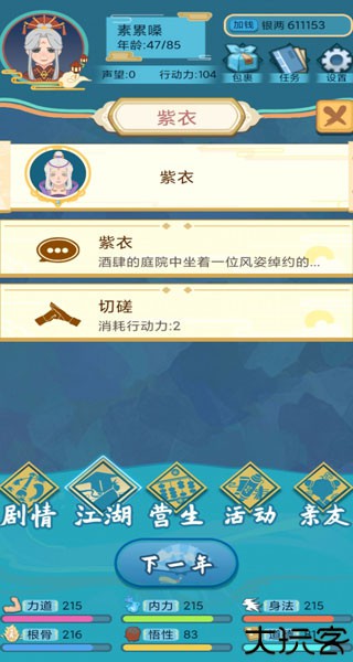 武侠人生rpg版将水墨国风与江湖奇遇相融,构建出一个充满东方韵味的武林世界。玩家化身初入江湖的侠客,游走于门派之间,拜师学艺、修炼秘籍,不断精进自身武功,最终在群雄纷争的武道世界中脱颖而出。武侠人生rpg版下载安装后,游戏以文字演绎搭配放置为核心,摆脱繁琐操作,轻松掌控人生轨迹。角色发展路径多样,奇遇频出,沉浸感极强,让每位玩家都能书写属于自己的武侠传奇。