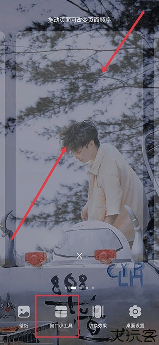 在手机主屏幕用两指捏合进入小工具添加界面。