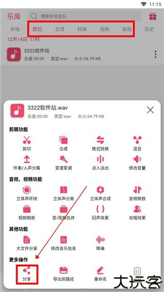 在更多操作中选择“分享”,同样支持上传至抖音平台。