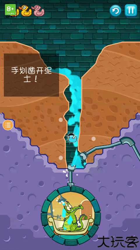 小鳄鱼爱洗澡游戏安卓版延续了轻松益智的风格,名叫小顽皮的鳄鱼需要在玩家的帮助将水引过去水管中,小鳄鱼才能顺利的、舒舒服服的泡个澡。小鳄鱼爱洗澡游戏安卓版下载安装后,玩家能够利用物理原理,挖掘泥土并设计水流路线,让干净水通过错综复杂的环境,帮助小鳄鱼成功洗澡。在过程中还要收集散落在地图里的小鸭子。