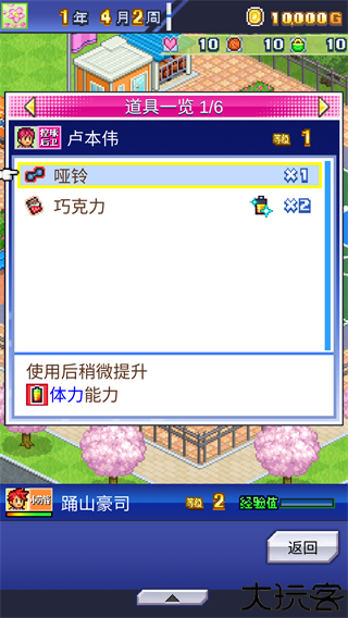 点练习场,调整计划或使用物品提升能力。