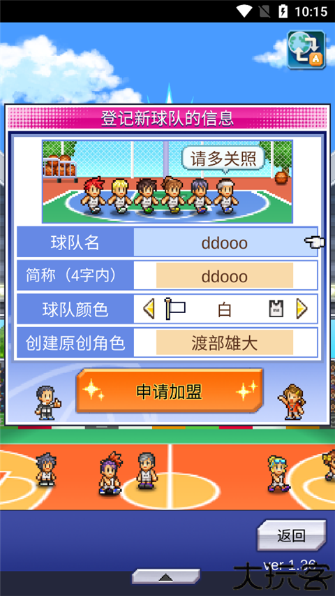 设定队名、制服与主角,确认后选“申请”。