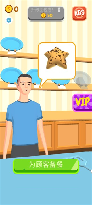 1、打开天天爱烘焙游戏安卓,来去点击为顾客备餐开始游戏。