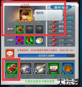 4、送人间体礼物,可以提高好感度,增加的属性也越多。