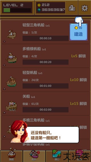 4、通过点击建造就可以建造出各种玩家所需要的船只来组成船队,进行航海冒险。