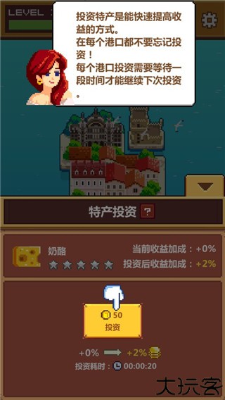 1、游戏中的投资特产是非常重要的一部分,它可以帮助玩家进行快速产出资源。