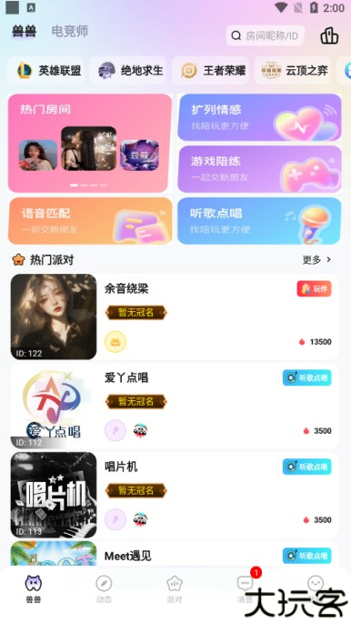 兽兽开黑app,是主打游戏组队与社交互动的聊天交友应用,也是专门为各种游戏爱好者所特别打造的交流与娱乐综合平台软件。软件设有专属的社区版块,涵盖多种热门的游戏类型,便于用户可根据兴趣去快速匹配队友。兽兽开黑app下载完成后,软件的语音聊天功能支持实时沟通,提升协作效率的同时也增强了社交体验。用户能透过软件高效组队、畅快游戏。