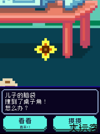 2、儿子撞到桌子角,玩家能“看看”或“摸摸”。