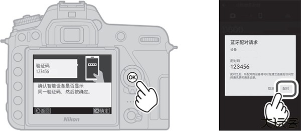 8、确认完毕后,最后按下相机上的ok,并点击手机上的配对按钮即可连接。