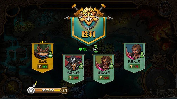 10、一局游戏结束后,系统会进入结算,取四名玩家金币的平均值,高于平均值的玩家获得积分,低于平均值的玩家扣分。