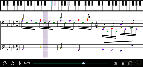 曲谱会逐行展示音符,用户可跟随弹奏练习。