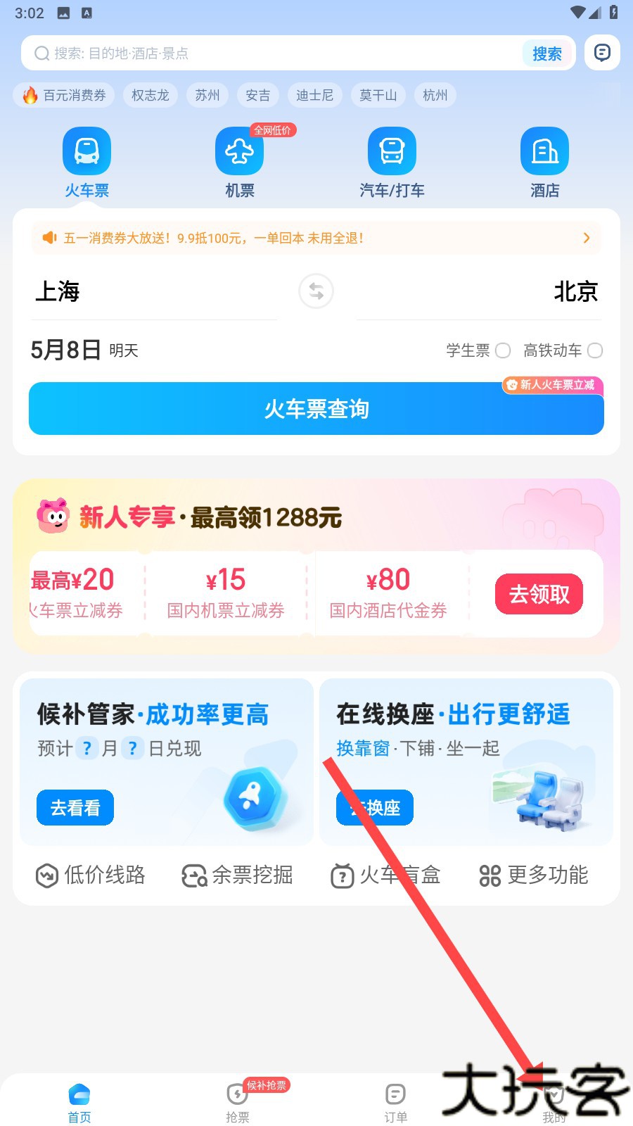 3、预约抢火车票实时捡漏,还能vip抢票也可以上车补票办理改签或退票。