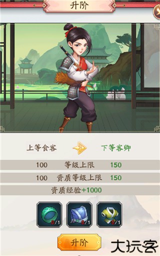1、门客达到一定等级需升阶,可在家族商店兑换材料打破等级限制。