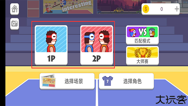 3、,点击“2P”进行双人模式,两个玩家可以同屏操作,而玩家需点击按钮把对手拉过中线即可获胜。