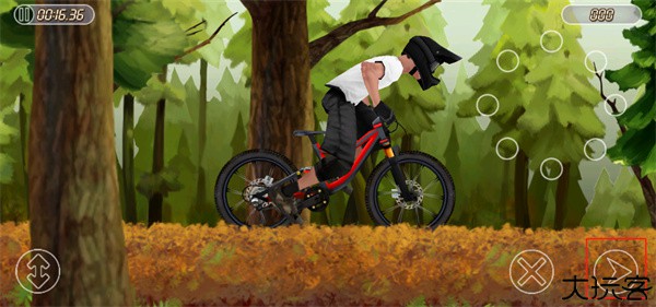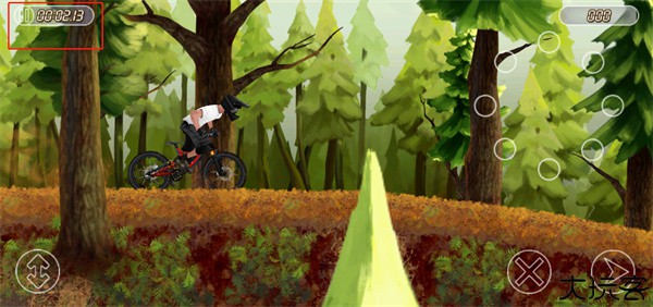 2、我们通过点击来加速,而刹车则是在下坡路段速度控制不住时派上用场,从而来保持自行车的平衡。