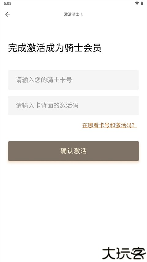 2、若已有骑士卡,可以直接点击进入登录页面,输入骑士卡号和激活码就可以了。