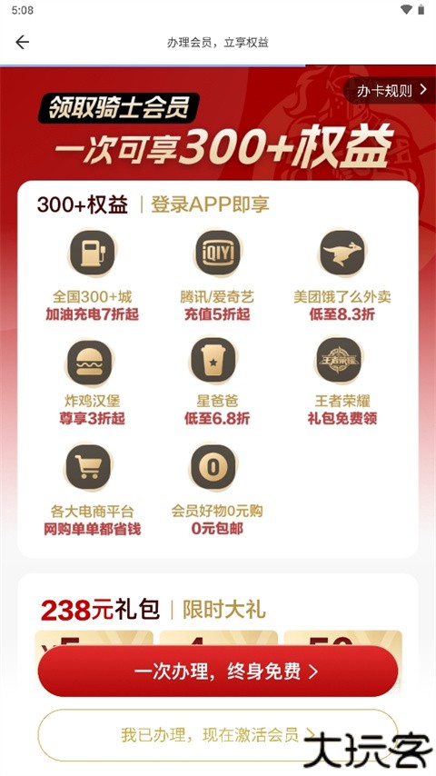 3、可免费申领骑士卡,输入卡片上的激活码激活。