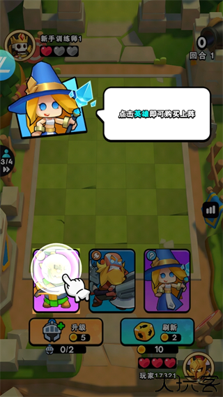 2、玩家进入游戏首先需要购买一个英雄并派遣上场。