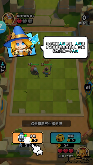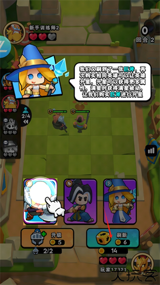 3、点击刷新直至刷到一样的英雄,进行购买可以合成二星。