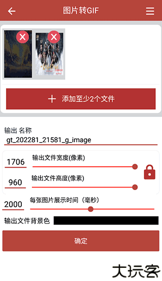 3、输入尺寸名称、时间间隔及背景设置,确认即可生成动画。