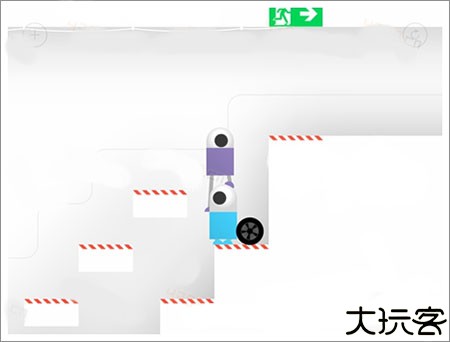 1、在第九十一关,首先两个机器人都利用轮胎往上爬,然后到最后,先让紫色机器人踩在蓝色机器人头上,再然后爬上轮胎,就能顺利过关。