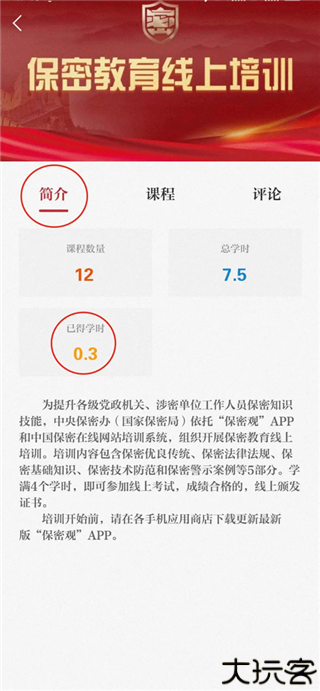 3、系统自动记录学习时长,可在简介-已得学时中查看累计进度。