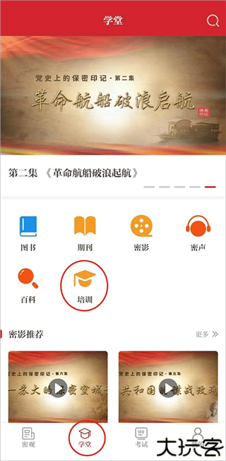1、打开应用,点击学堂版块中的“培训”选项进入学习模块。