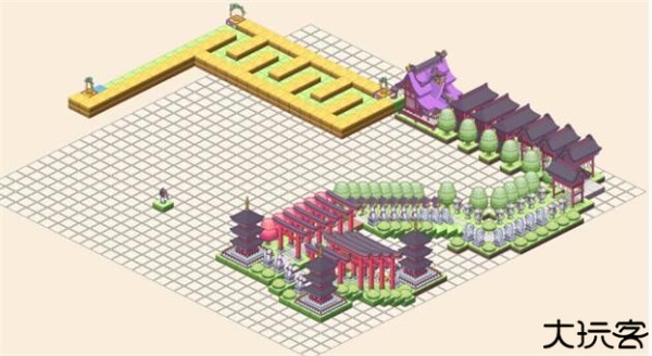 3、神社建造玩法新颖,地形整理完全靠你创意。