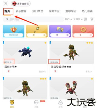 在首页中查看当前可购买的皮肤资源,分类清晰,类型丰富。