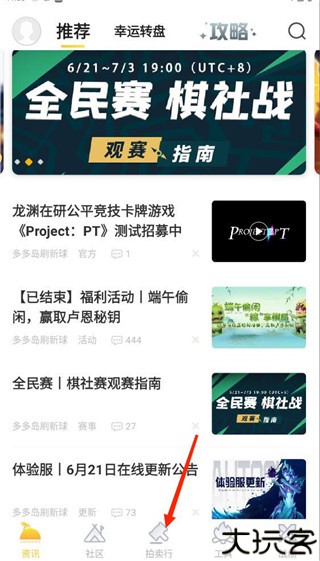 先登录软件并完成账号绑定,然后进入底部导航的“拍卖行”入口。