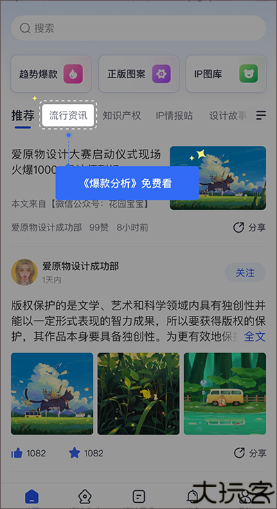 1、打开爱原物设计app进入有着流行资讯、趋势创意来去激发畅销灵感。