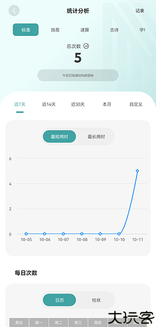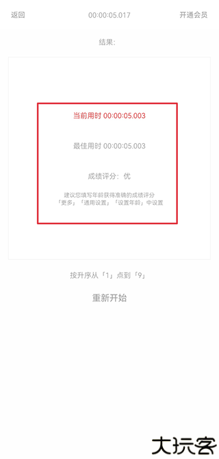 3、系统根据完成速度评分,时间越短代表注意力越集中。