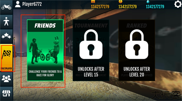 2、主页左栏加人组局,开启摩托竞速比拼之旅。