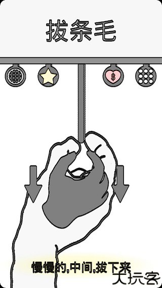 1、打开进入后就可以双指按住屏幕,在去疯狂往后移动将毛给拔出来。