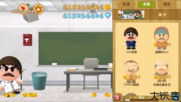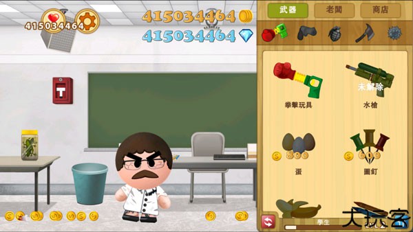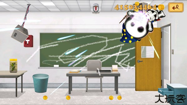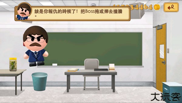2、玩家可以拖拽老板到处碰撞,撞上墙壁或地板就会获得金币。