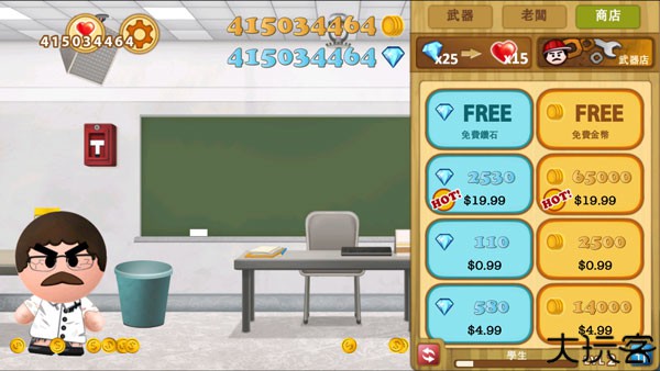 3、点击游戏的右上角按钮,玩家还可以购买武器来攻击他。