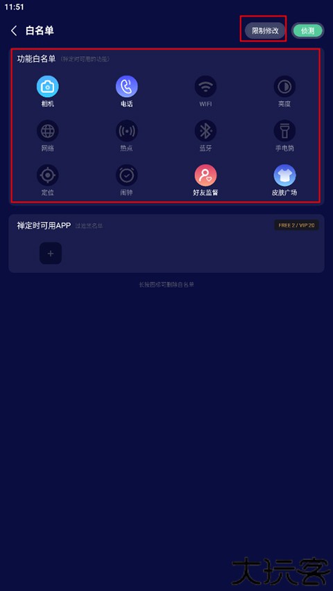 2、白名单可自定义学习期间可用APP清单。