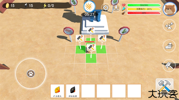 4、通过搭建帐篷、金矿等关键设施,进一步提升生存能力,同时增加资源产出。