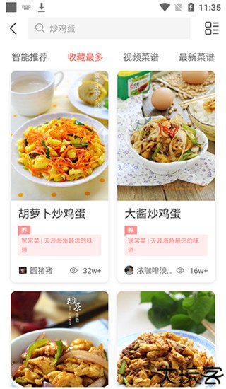 4、随后软件就会根据热度给用户推荐所有和炒鸡蛋有关的菜色。