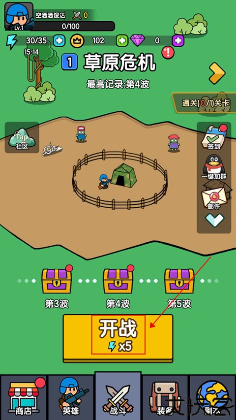 1、玩家进入游戏后,点击“开战”即可进入战斗关卡。