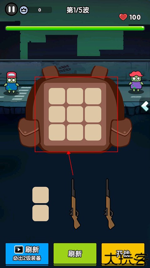 2、玩家在关卡每波的开始前,都可以选择下方的装备放入背包,只要背包放的下,就可以全选。