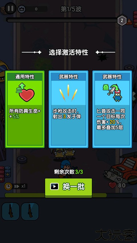 5、当上方经验条满后就可以升级,进行技能特性的选择,而玩家可以按照携带的武器进行选择。