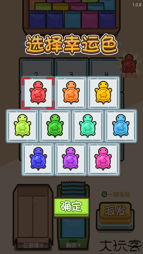 1、游戏的主要玩法就是拆盲盒,拆出的乌龟会放在中间的格子中。