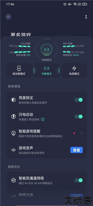 点击“保障”可自由切换电竞、节能等多种运行模式。