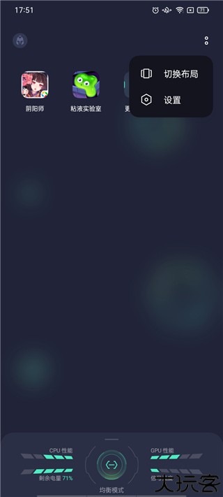 右上角支持切换界面风格并查看CPU、GPU等运行数据。