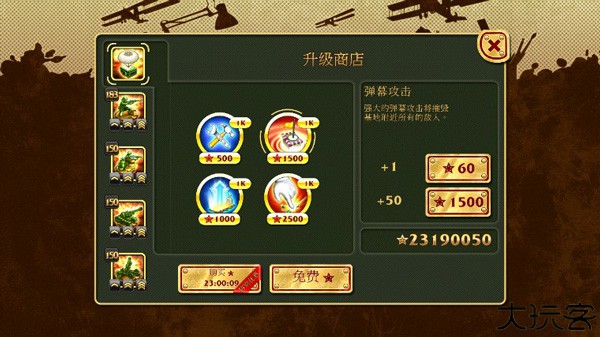 b. 弹幕攻击:强大的弹幕攻击将摧毁基地附近所有的敌人,将在12个关卡之后可用;