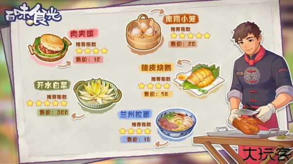 提高厨具与熟练度,逐步解锁各地菜肴,收益随之提升。