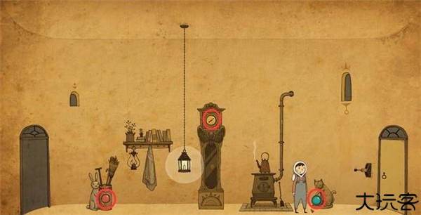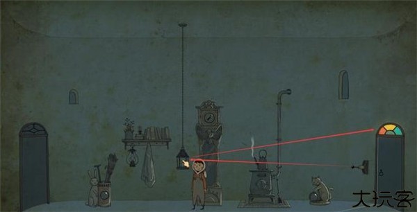 5、玩家重新点亮吊灯后,将兔子和猫手中的颜色球切换到根据门上的颜色即可。