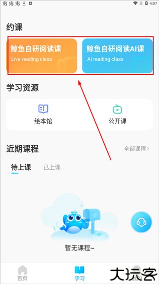 1、打开首页点击“学习”模块,快速进入课程分类选项。