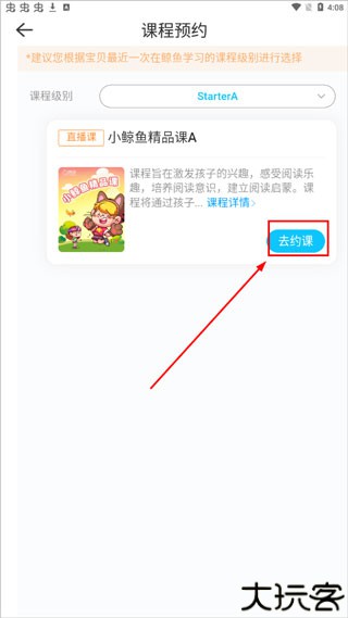 4、选定学习等级后,点击“去约课”进行预约操作。
